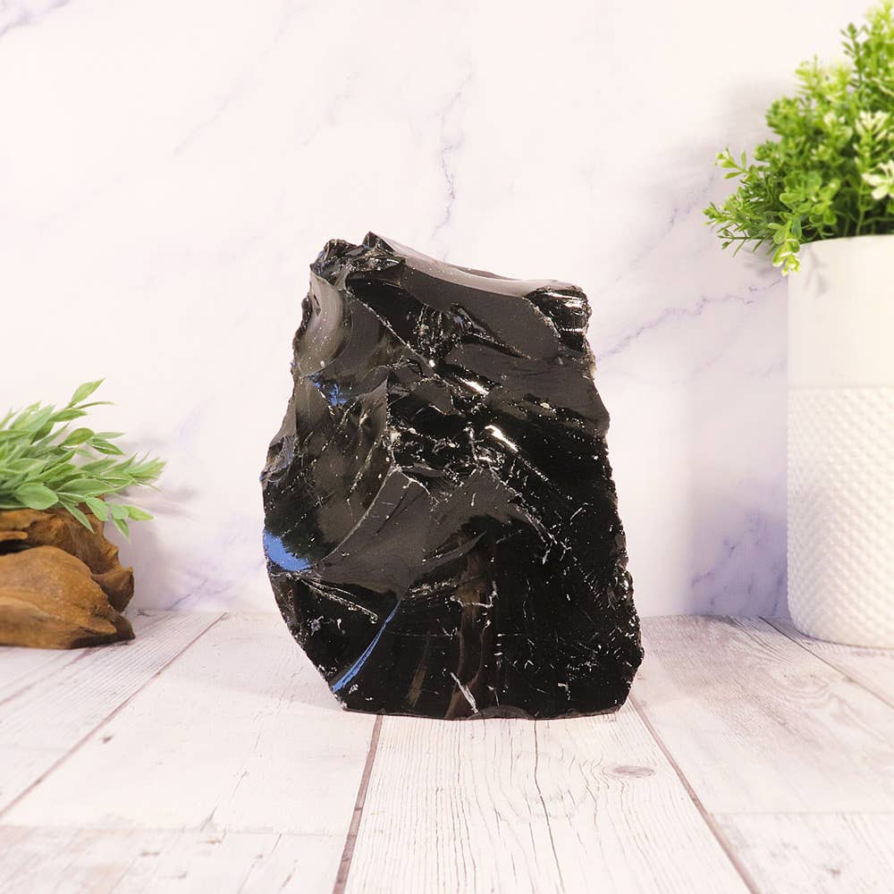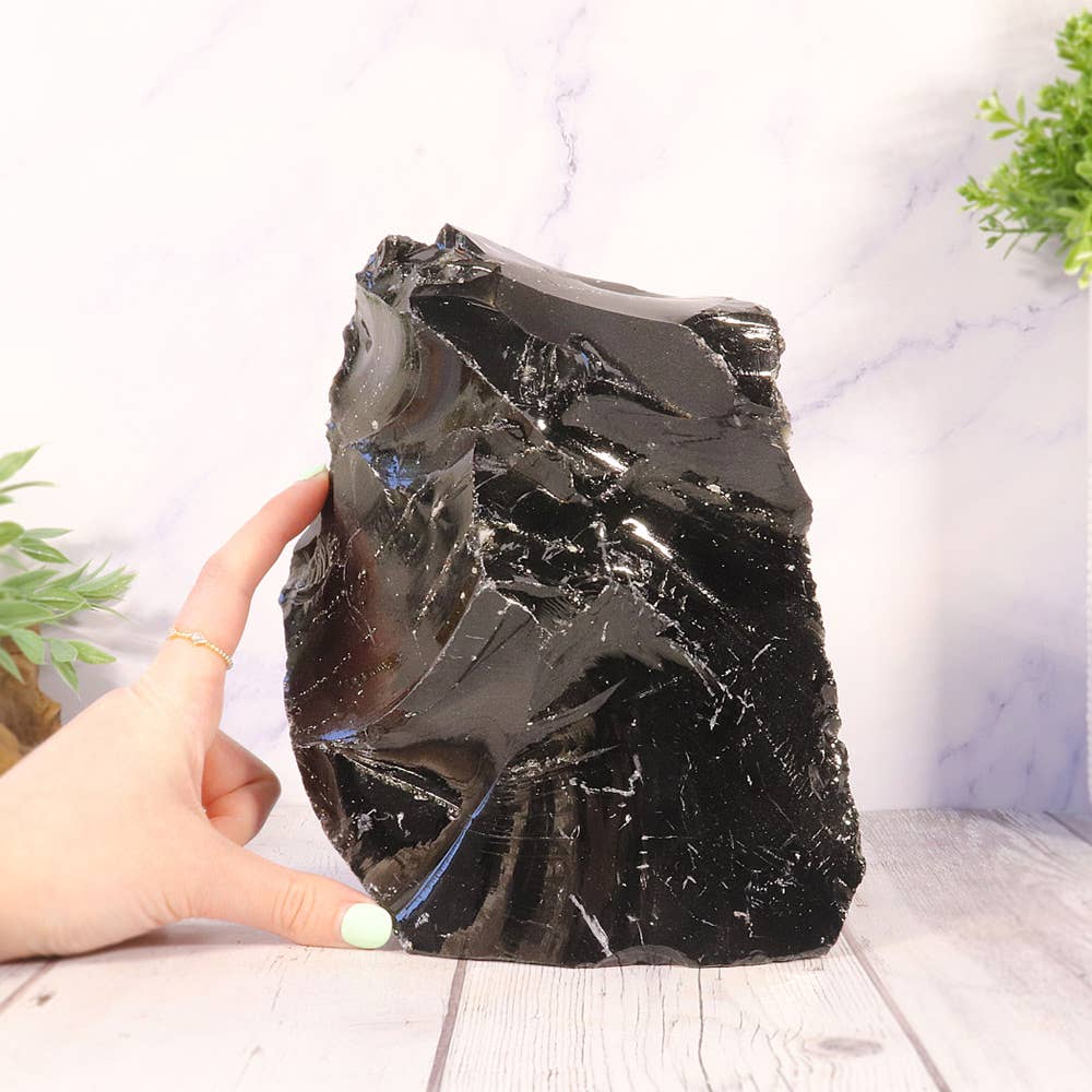 La pierre d'obsidienne noire est un puissant purificateur de la brume psychique créée dans votre aura, et c'est une pierre de protection psychique forte. Elle possède des propriétés métaphysiques puissantes qui vous protègeront contre la négativité, et son énergie peut stimuler le don de prophétie. Veuillez faire preuve de prudence lors de la manipulation de l'obsidienne noire brute, car ses bords naturels peuvent couper les mains non protégées.