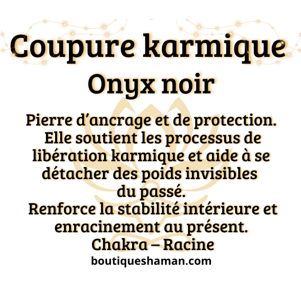 Elle soutient les processus de libération karmique et aide à se détacher des poids invisibles du passé. Renforce la stabilité intérieure et enracinement au présent.