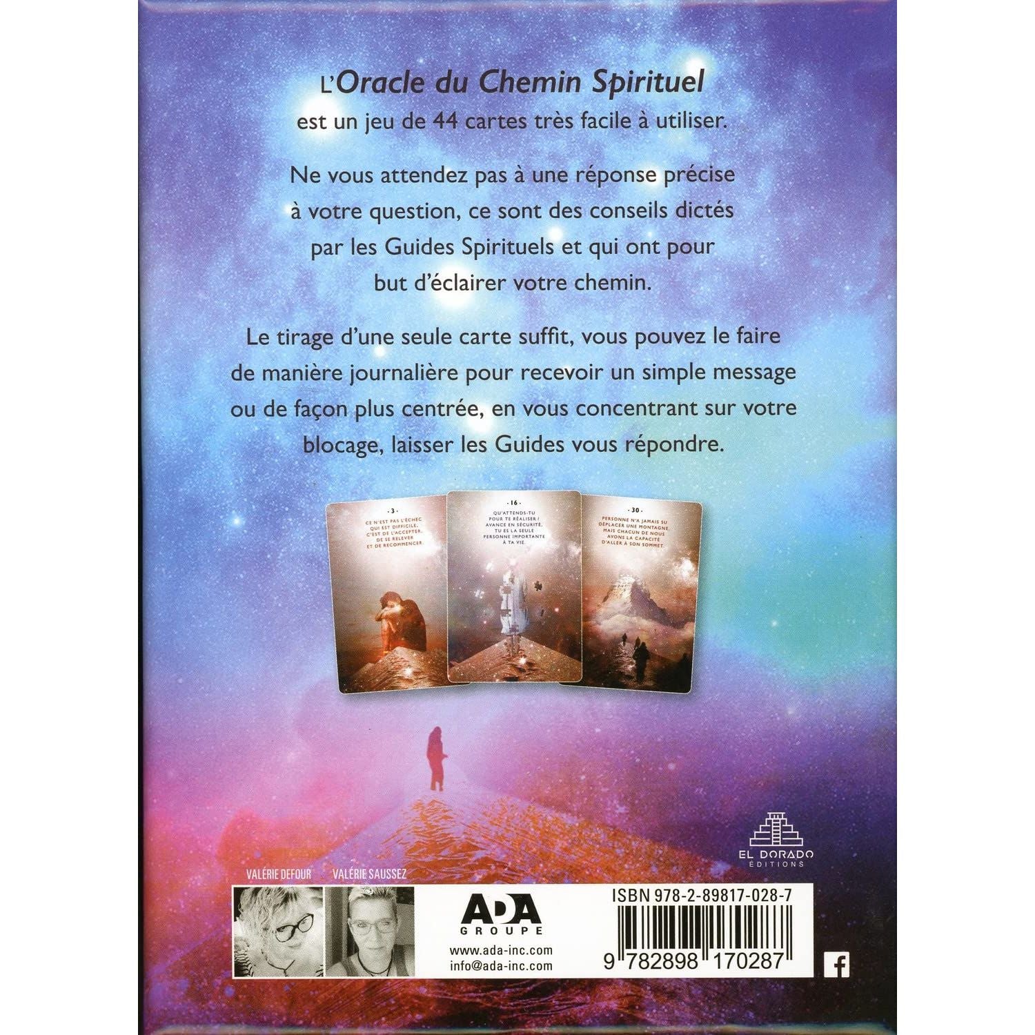 L'Oracle du Chemin Spirituel est un jeu de 44 cartes très facile à utiliser. Ne vous attendez pas à une réponse précise à votre question, ce sont des conseils dictés par les Guides Spirituels et qui ont pour but d'éclairer votre chemin. Le tirage d'une seule carte suffit, vous pouvez le faire de manière journalière pour recevoir un simple message ou de façon plus centrée, en vous concentrant sur votre blocage, laissez les guides vous répondre.